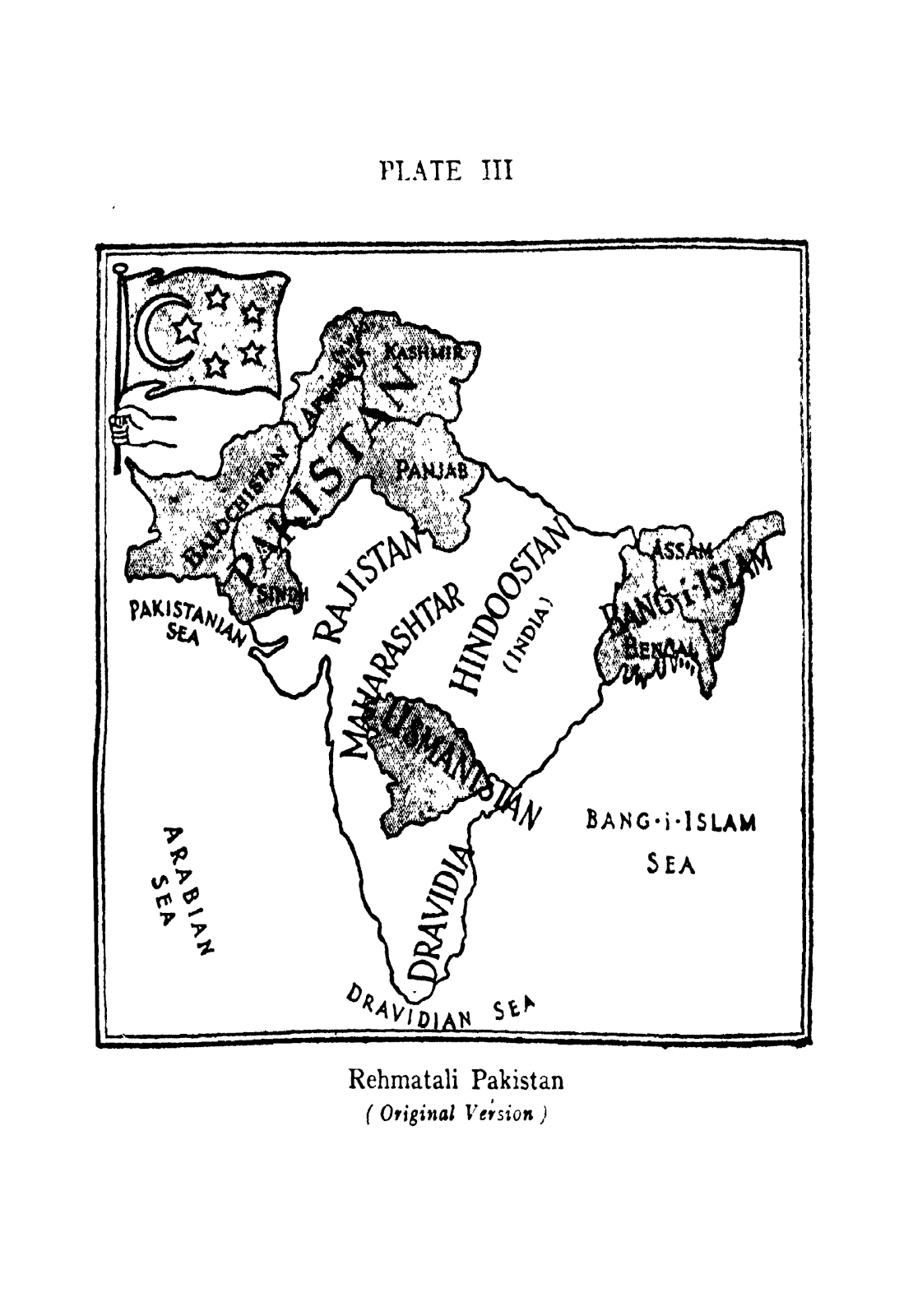 پاکستان کا نام رکھنے والے چوہدری رحمت علی کا تصور یہ تھا کہ بھارت کے علاوہ تین الگ ممالک بنیں گے۔ پاکستان، بانگِ اسلام اور عثمانستان (جو حیدرآباد دکن کی آزاد ریاست تھی)۔